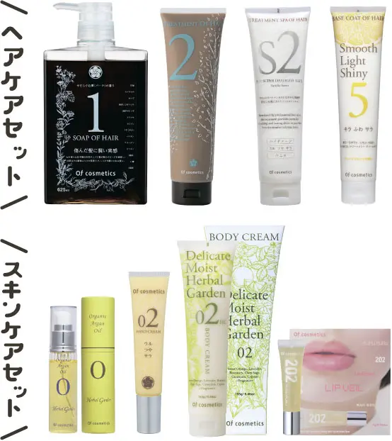 素材にとことんこだわる「オブ・コスメティックス」からヘアケアセットとスキンケアセットの2種類を各10セット限定販売。 乾燥に負けない冬のフル装備が一度にそろうと期待される。ヘアケアセットでは髪の質感と地肌を整え、スキンケアセットでは、全身の乾燥対策が完結できる!