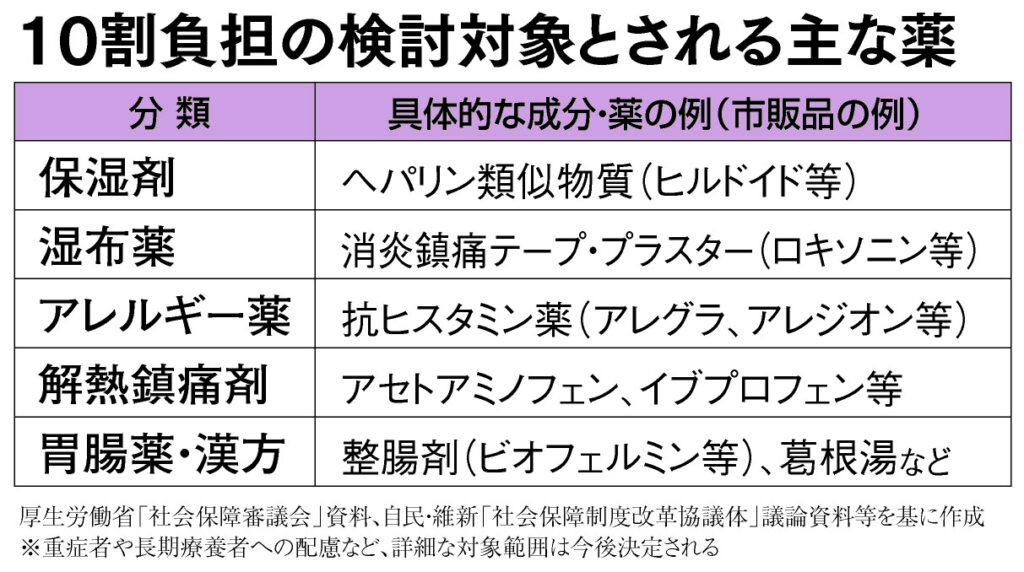背景には、高齢化に伴い膨らみ続ける現役世代の保険料負担を「構造改革で打破する」狙いがある。数千億円規模の財源捻出を目指し、次期衆院選公約の柱にして政府に実行を迫る構えだ。ただ、患者側の反発や「セルフメディケーション」の定着など、実施に向けた課題も多い。