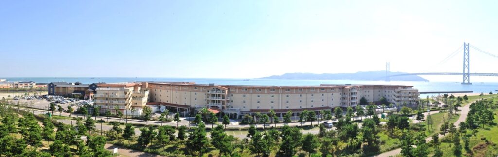 館内に入ると、高級感あふれるフロントが出迎える。吹き抜けの多目的ホールには、朝は柔らかな陽光が差し込み、夜は明石海峡大橋のライトアップが絵画のように浮かび上がる。海と空が一体化する光景はまさに〝非日常〟で、日常の中にリゾートのような時間が流れる。予約不要で利用できるレストランや、屋上庭園・テラス・露天風呂付き大浴場など、まるで旅行気分の毎日が続く。