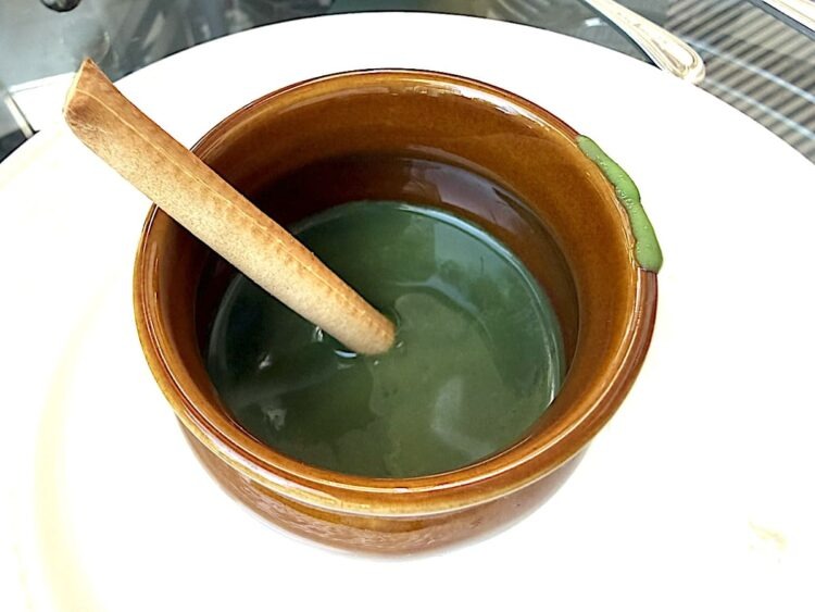 また、いちごと抹茶のパンナコッタは、ツボ入りで上から見ると抹茶の深い緑色が印象的で苦味が強いのかと思って食べてみるといちご味のほんのりした甘さが抹茶と絡みあり、もう一つオーダーしたいくらいだった。