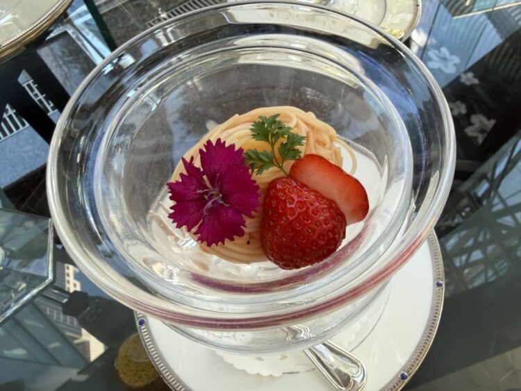 またティースタンドとは別に特別な一皿(スペシャルディッシュ)として、いちごがふんわりと香るカッペリーニが前菜として出てきた。