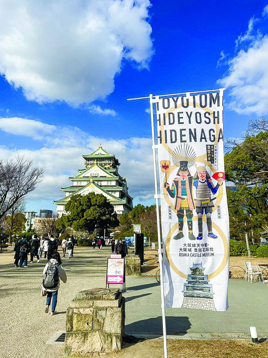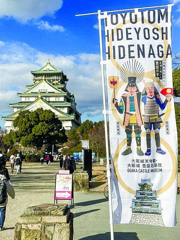 今年のNHK大河ドラマ「豊臣兄弟!」(1月4日から放送)で豊臣秀長が主人公として描かれていることに合わせ、大阪城天守閣では、秀吉・秀長兄弟に焦点を当てた「豊臣兄弟ゆかりの地」キャンペーンを実施している。期間は12月27日まで。城内に掲出されたのぼりやポスターは、秀吉と秀長の人物像を親しみやすいタッチのイラストで表現。歴史上、対立する兄弟が多かった中で、仲が良かったとされる二人の関係性や、人とのつながりを大切にした姿を伝えている。