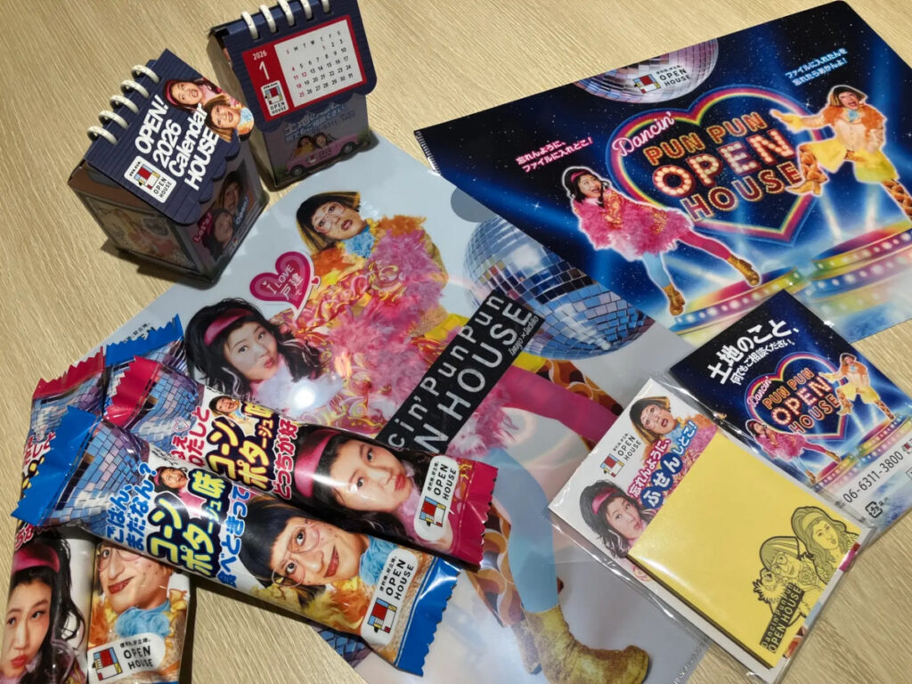 「すっちー&島田珠代のオープンハウスをごひいきに!プロジェクト」で用意されたノベルティーの一部