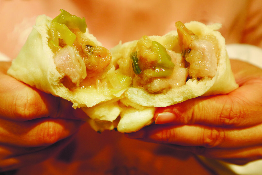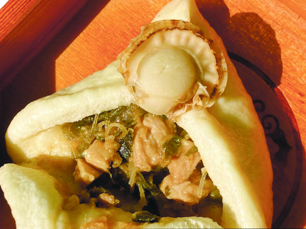 そうそう、肝心の味。どの肉まんも手で割ると「じゅっわぁ〜」と音が出そうな勢いで肉汁が溢れ、どばっと具が入っている。ラム肉まんは「調味料は塩と砂糖だけ」とは信じられないほど、滋味深いラムの旨みとタマネギやネギの甘みが具に行き渡り、ゴロゴロ入ったラムの肉々しさと野菜の食感が良い塩梅。「ホタテ味噌豚まん」は、「日本の味噌汁をイメージしました」とのこと、ベースは味噌で、そこに豆腐、春雨、ホタテ、豚肉、タケノコなどが加わり、味噌味の春巻の具が詰まった肉まんといった味。