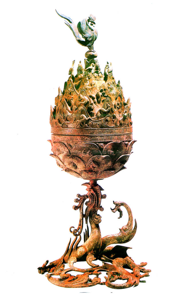 国宝の百済金銅大香炉(国立扶余博物館蔵)。百済の高度な鋳造技術と芸術性が垣間見える