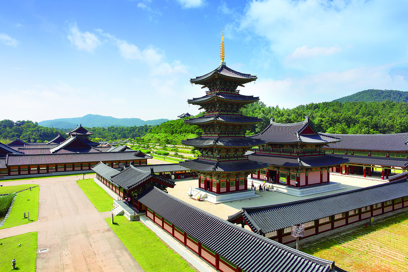 百済文化団地に復元された泗沘宮。百済の最後の都、泗沘(しび)にあった王宮を再現した施設