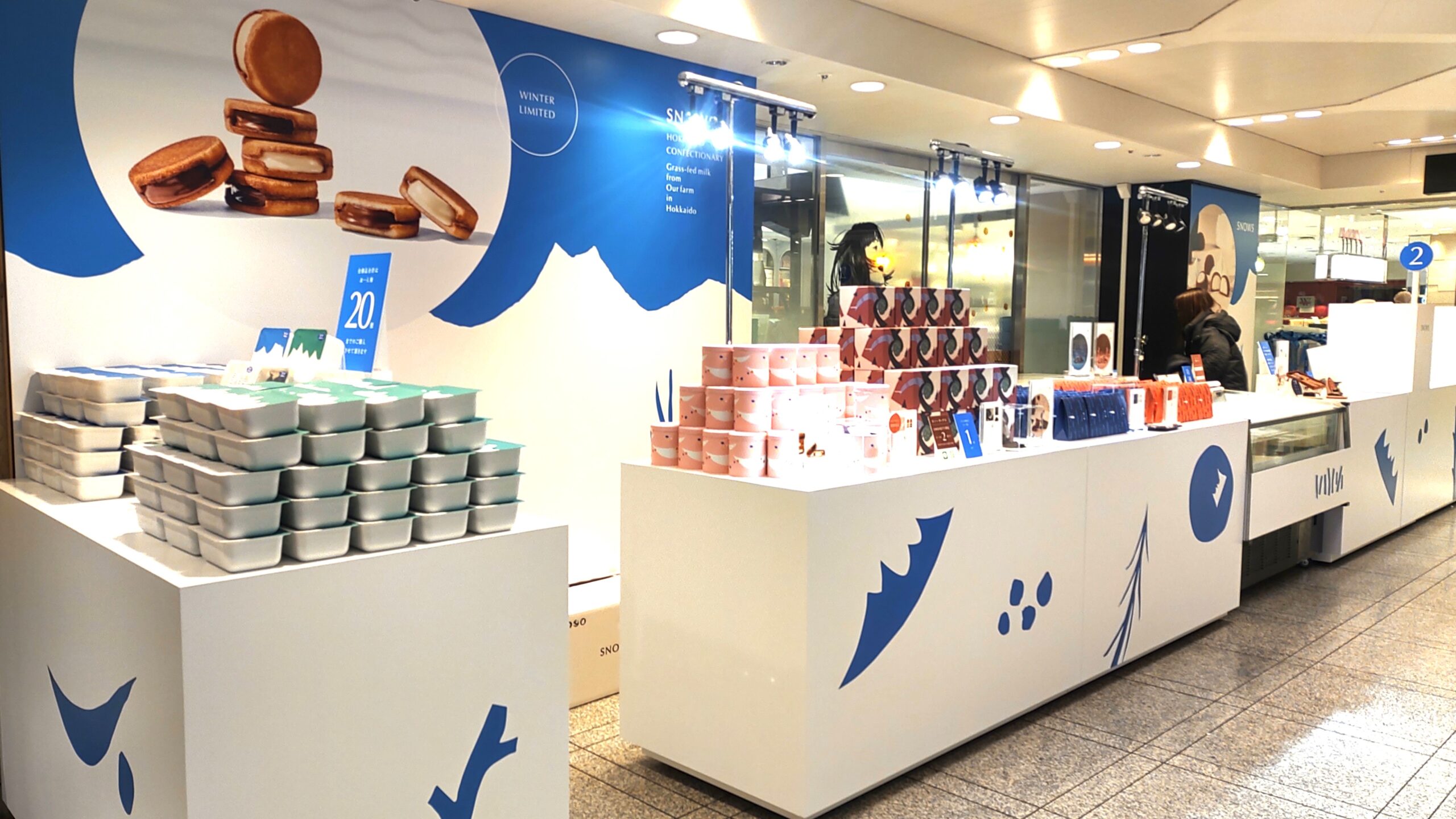 北海道発・冬季限定スイーツ「SNOWS」は、1⽉21⽇から2⽉14⽇のバレンタインシーズンに、⼤丸梅⽥店に期間限定でポップアップショップを出店し、新商品の「雪まくら」を中心にしたスイーツを販売する。