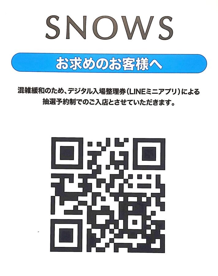 直営の放牧酪農場で搾った濃厚でコクのある冬の放牧⽜乳をはじめ、北海道産にこだわった上質な原材料を使⽤した菓⼦は、オンラインでもPOP UP STOREでも連⽇完売が続くほど話題。そのためこのポップアップショップでは、「雪まくら」に関しては事前のデジタル抽選予約システムを採用していて、指定の二次元コードから事前に抽選に参加して購入出来る日時を決めて来店してもらうようになっている。