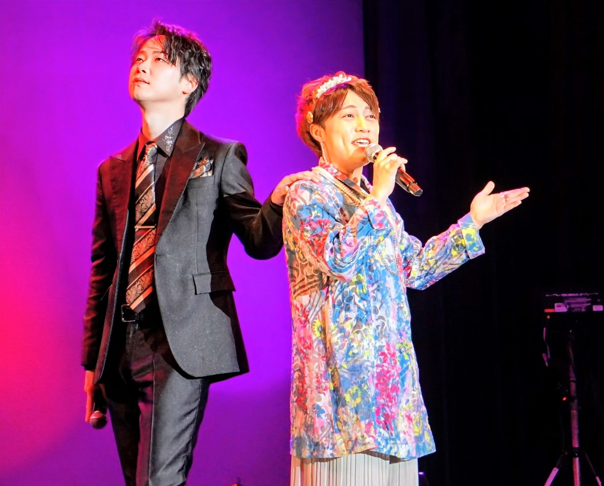 この日のステージでも通常のデュオでまず2曲歌い、続いてソロで1曲ずつ。ヤマト歌唱中にヒカルが大急ぎで着替えて『スナックはやぶさ』を開店し、2人で演じてラストへ。にぎやかな演出好きな大阪のファンを喜ばせた。ヒカルは「年末に出たばかりの新曲なので一般のお客様の反応がとっても気になる。このライブはいろいろな歌手の方と共演でき、ボクたちを生で初めて見る方もいる。今日は大阪を意識してママの衣装もちょっと派手めにしたんですが、皆さん笑顔で喜んで頂けて手応え感じました」と笑顔に。