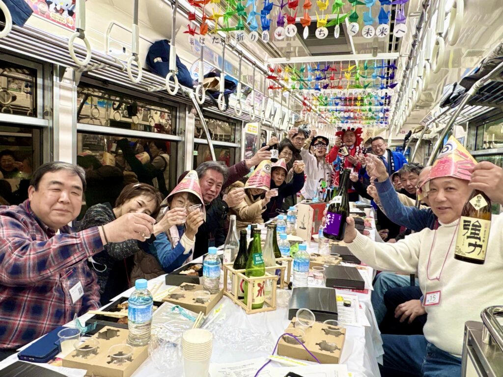地酒飲み比べや企画イベントで車内は終始にぎわった=1月24日