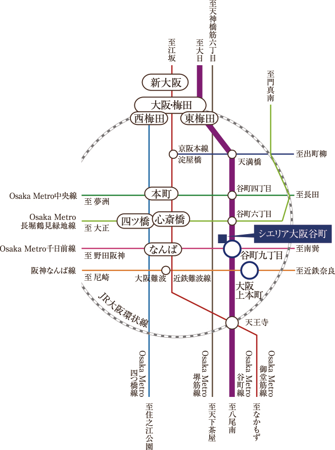 「東西南北、どこに行くにも便利。都心部だけでなく、奈良や神戸にも乗り換えなしでアクセスできるのが気に入っています」。谷町九丁目で暮らす人々に街の印象を尋ねると、皆口をそろえてこのようなフレーズが返ってくる。