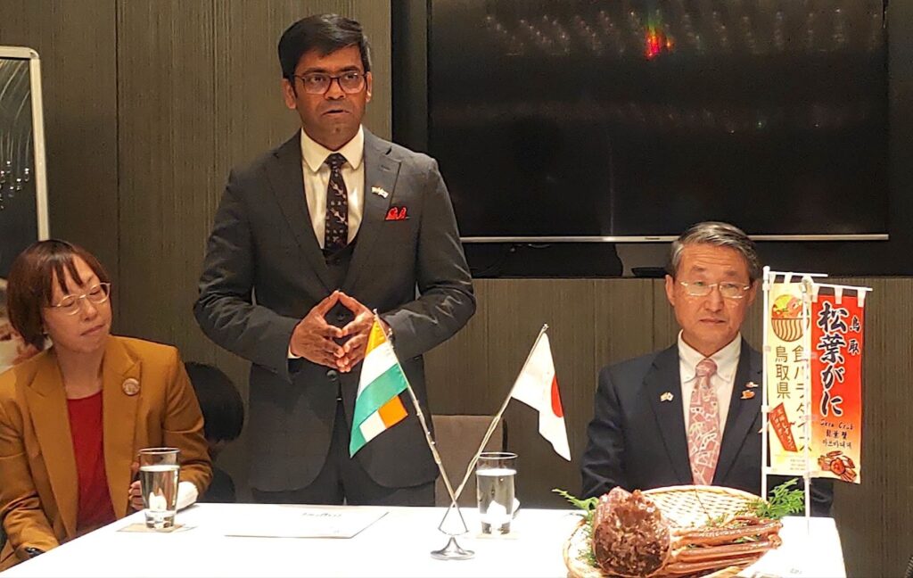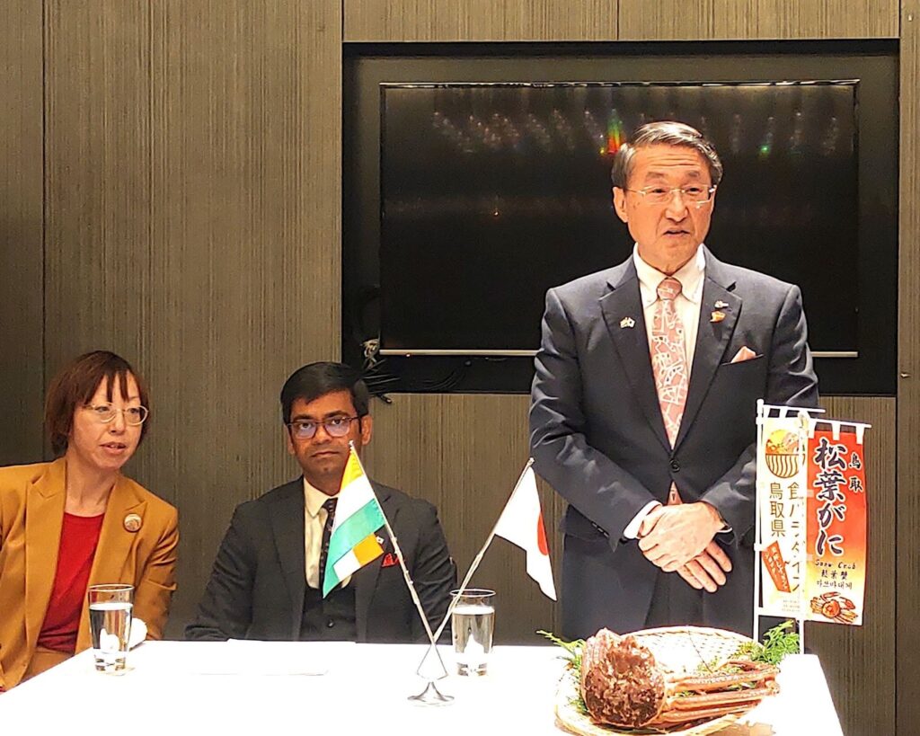 会場には、鳥取県が今後のビジネス展開で期待を寄せるインドを代表し、チャンドル・アッパル・インド総領事も同席。松葉がに料理に舌鼓を打つ場面が見られた。