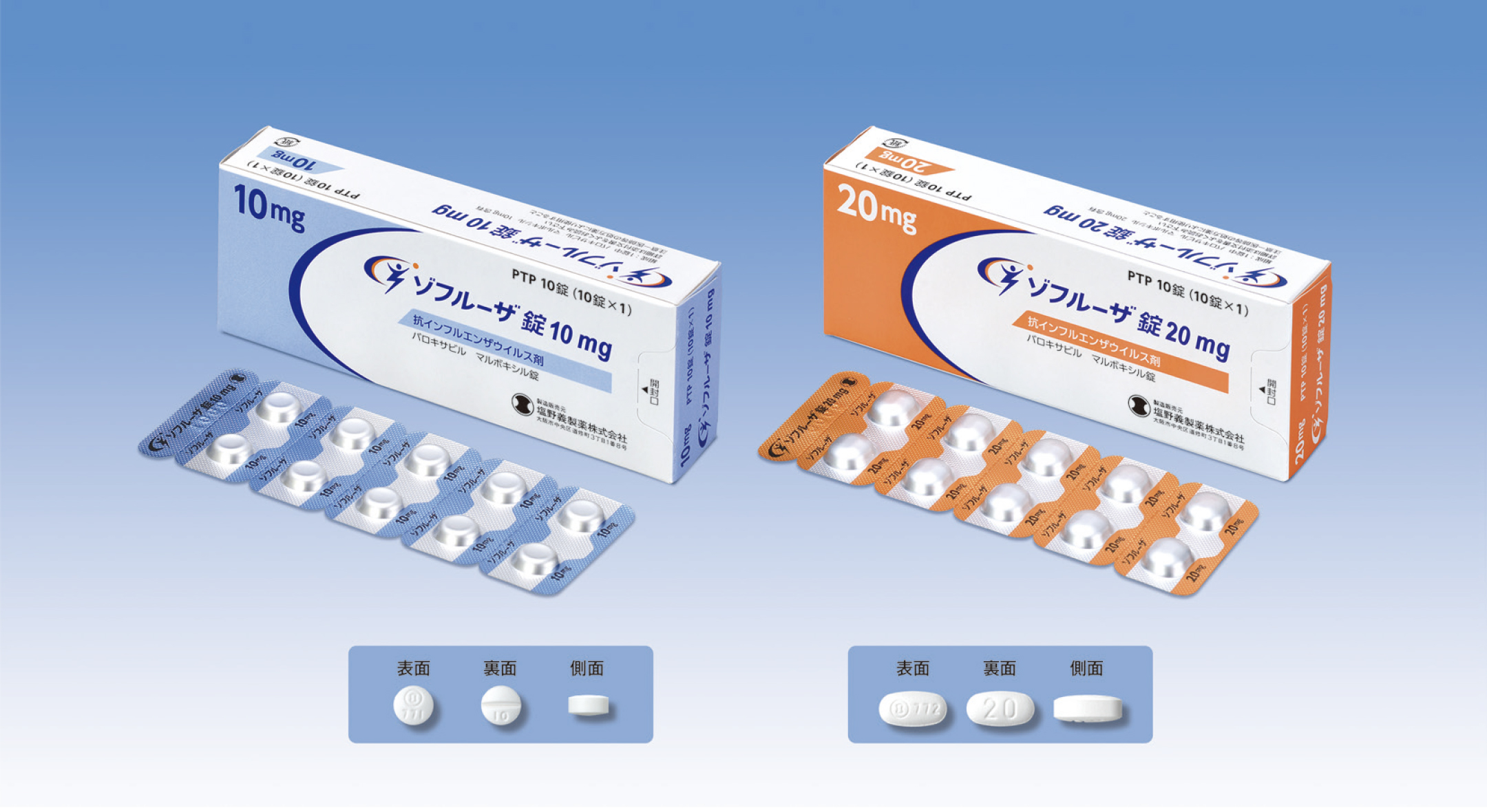 塩野義のインフルエンザ治療薬「ゾフルーザ」。経口投与の錠剤で、10㍉㌘錠(左)と20㍉㌘錠(右)(塩野義製薬提供)
