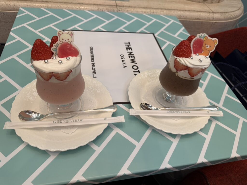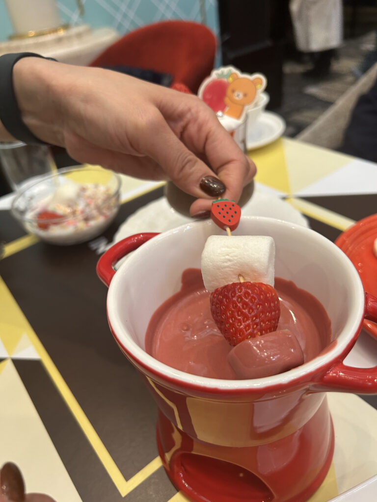 ビュッフェに彩りを添えるのが、リラックマたちをモチーフにしたスペシャルドリンク「リラックマのチョコスムージー」と「コリラックマのストロベリースムージー」(各1500円)。2つを並べて写真を撮る人の姿も見られた。他には「いちごチョコレートフォンデュ」(1500円)や紅ほっぺ、ゆうべに、女峰のイチゴ食べ比べプレート(1500円)も食べられる(日によって品種の変更あり)。