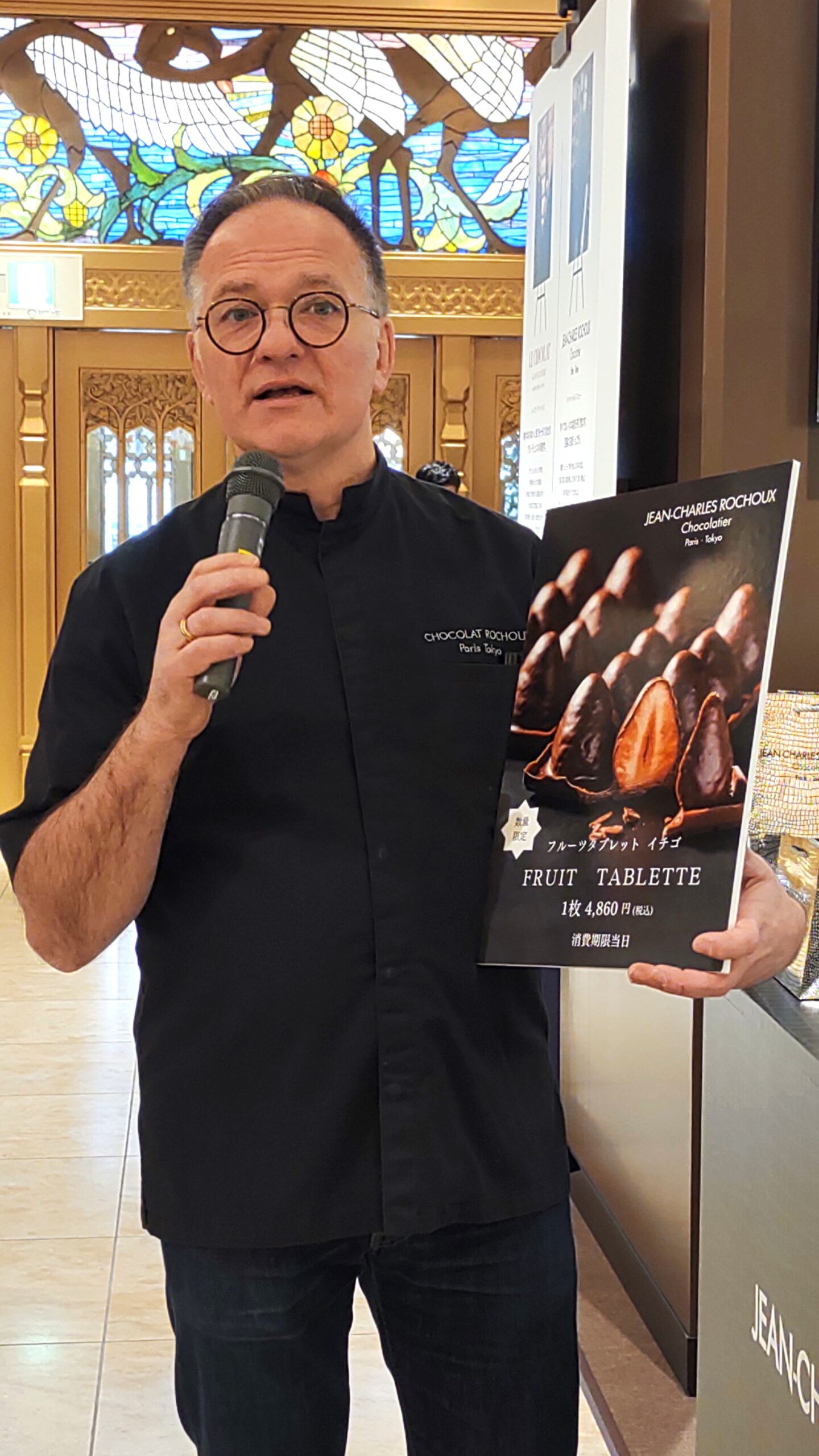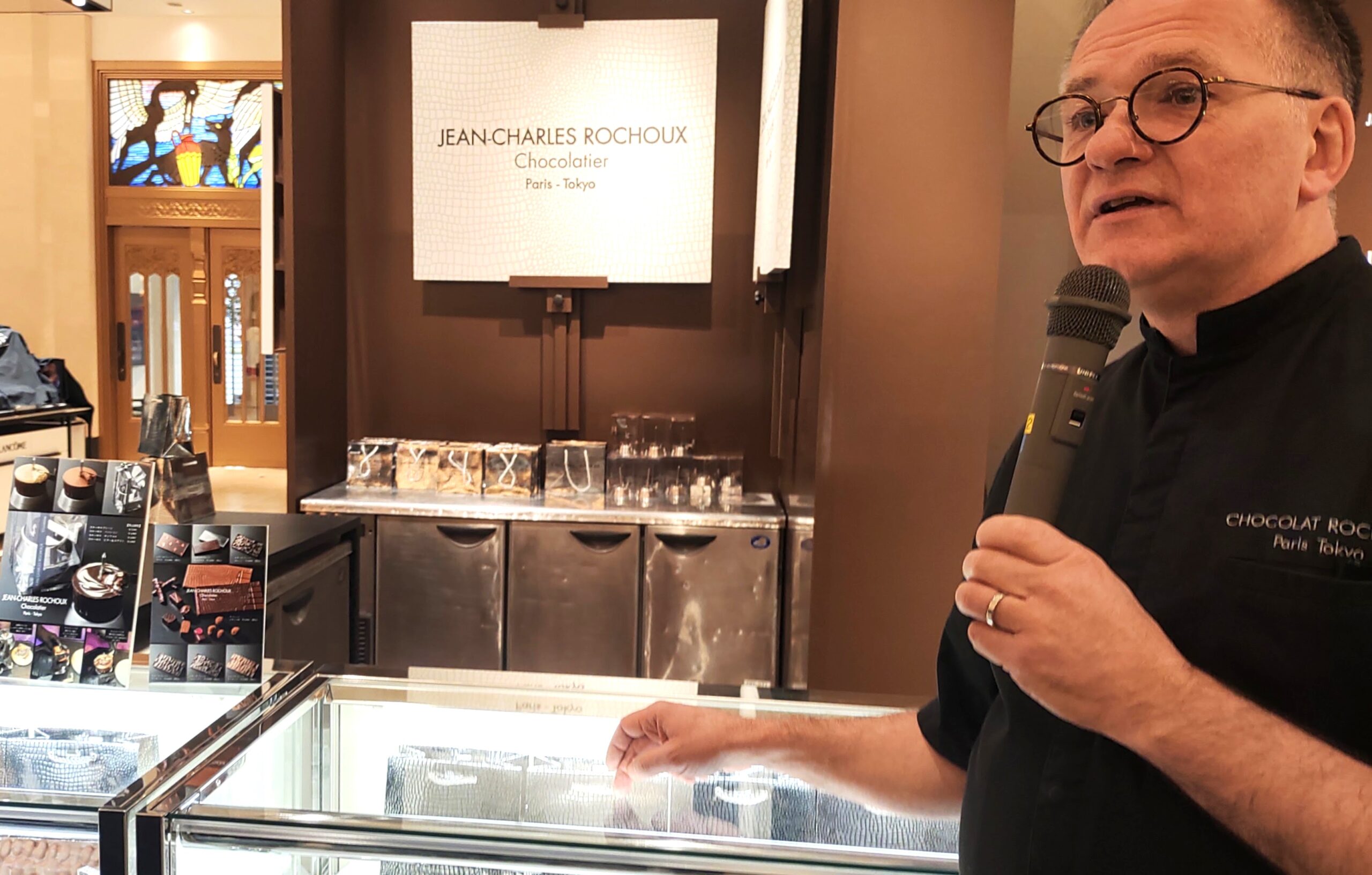 メディアを集めたお披露目会では、4ブランドの説明があり、初登場のジャン=シャルル・ロシューでは、ショコラティエのジャン=シャルル・ロシューさんが来日し、直接チョコレートに込めた思いを語った。