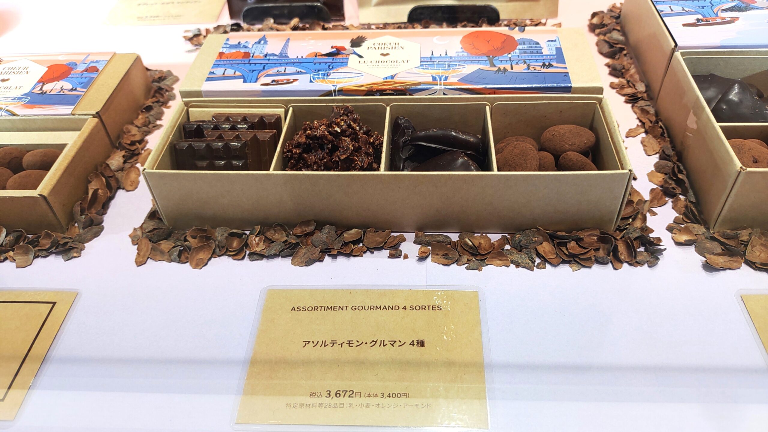 特別ボックスは、ドラジェ、オランジェット、ミニタブレット、ロックの4種のアソートで、店舗で人気の様々なチョコレートを贅沢に詰め合わせたここだけの限定ボックス。