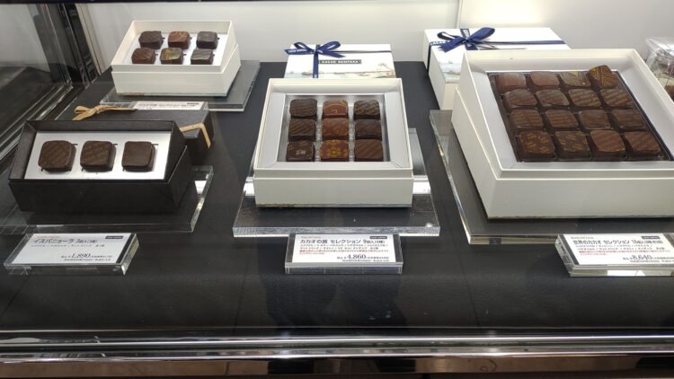また「館内のアート装飾も力を入れているので、そこにしっかり調和を取れるような形で、ショコラトリエとして、アートを見てるように、1社だけではなくって、この4ブランドをしっかり堪能しながら楽しんで帰っていただける、そんなしつらえになっている。見た目も美しいこだわりのチョコレートをジュエリー展示のようなディスプレイで紹介している」とも話した。