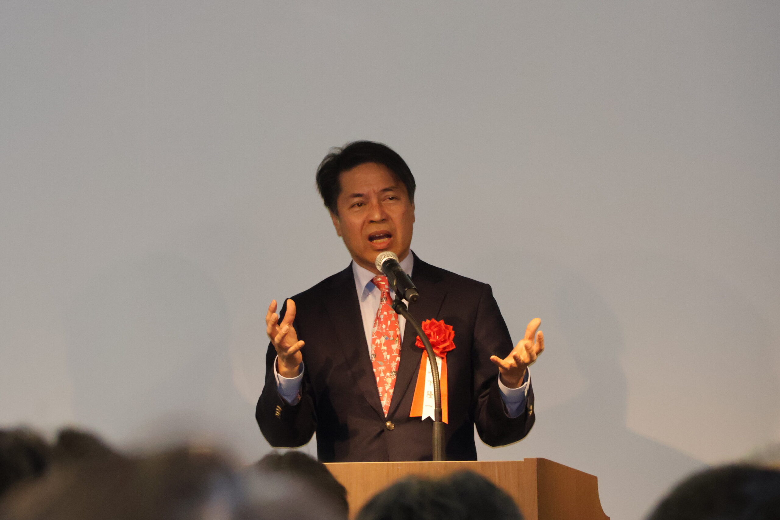 山下隆一中小企業庁長官は、名目賃金や設備投資は上向きつつも実質賃金が伸び悩む現状に触れ、「変革の主役は中堅企業や100億を目指す企業の経営者だ」と強調。大阪・関西万博の開催などで活力が高まる関西について「今後も成長を後押ししていきたい。さらに多くの100億企業が生まれ、国の経済や地域経済にインパクトを与えることを確信している」と期待を示した。(写真・文=西山美沙希)