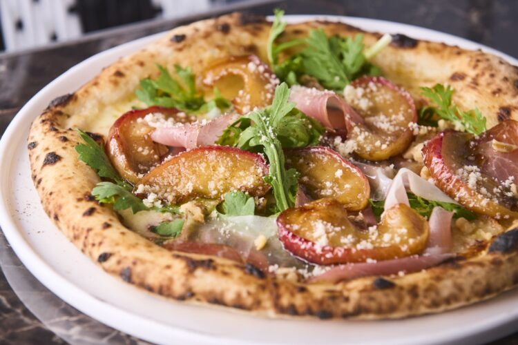 春菊と燻製生ハムと青森りんごのゴルゴンゾーラ
