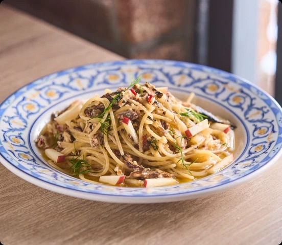 りんご×オイルサーディンのパスタ