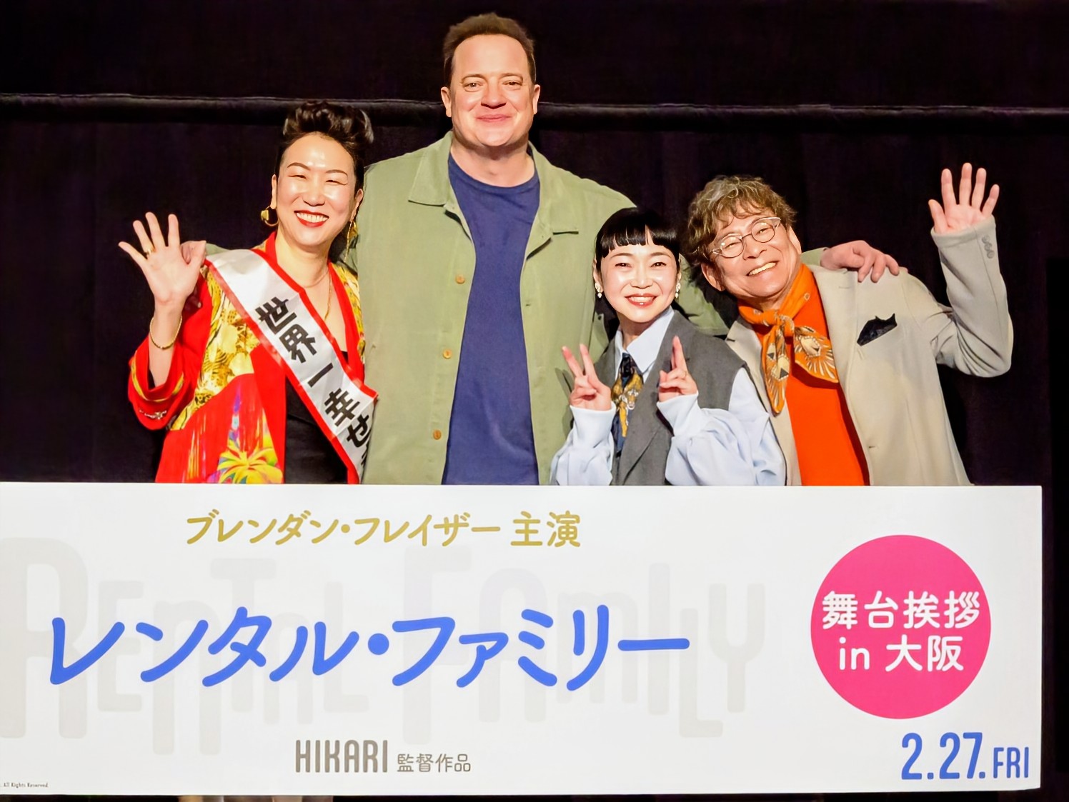 米国を中心に活動する日本人のHIKARI監督が、「ザ・ホエール」でアカデミー賞主演男優賞受賞のブレンダン・フレイザー主演で、日本独特のレンタル家族サービスを描いたヒューマン映画「レンタル・ファミリー」(2月27日公開)の完成披露試写がこのほど、同監督の故郷である大阪で行われた。吉本新喜劇の内場勝則・未知やすえ夫妻が地元ゲストとして2人を出迎えた。