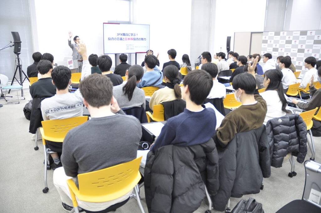 大阪取引所(大阪市中央区)で2月28日、高校生・大学生を対象にした投資教育イベント「学生向けJPX投資カレッジ」が開かれた。主催は日本取引所グループ(JPX)と大阪取引所、学生投資連合(USIC)。大阪での開催は初めてで、約50人の学生らが参加した。