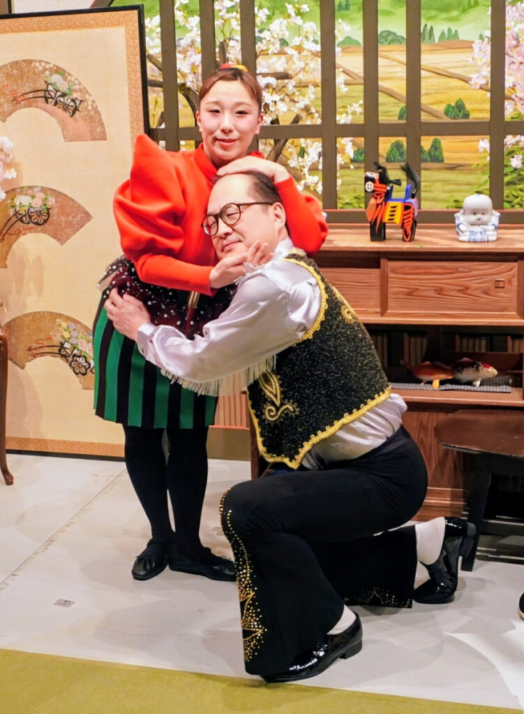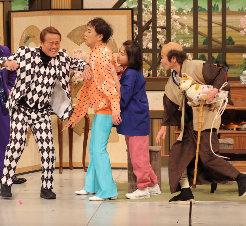フィナーレの全員あいさつでGMから、この日から今後1年間三代目「新喜劇の顔」として活動する座員について、森田まりこ(45)と松浦真也(49)が発表された。2人は「ヤンシー&マリコンヌ」としてリンボーダンスで歌い踊るコンビユニットを組んでおり、この日は新しいコンビギャグとして先の冬季五輪で金メダルを獲得したフィギュアスケートのりくりゅうペアをまねた抱擁ポーズを披露。森田と実生活で結婚している座員の清水啓之(42)は「まりこ姉さんの名前が先に呼ばれた時は、一瞬〝ボクも一緒かな?〟とドキドキした」とボケて場内大笑い。