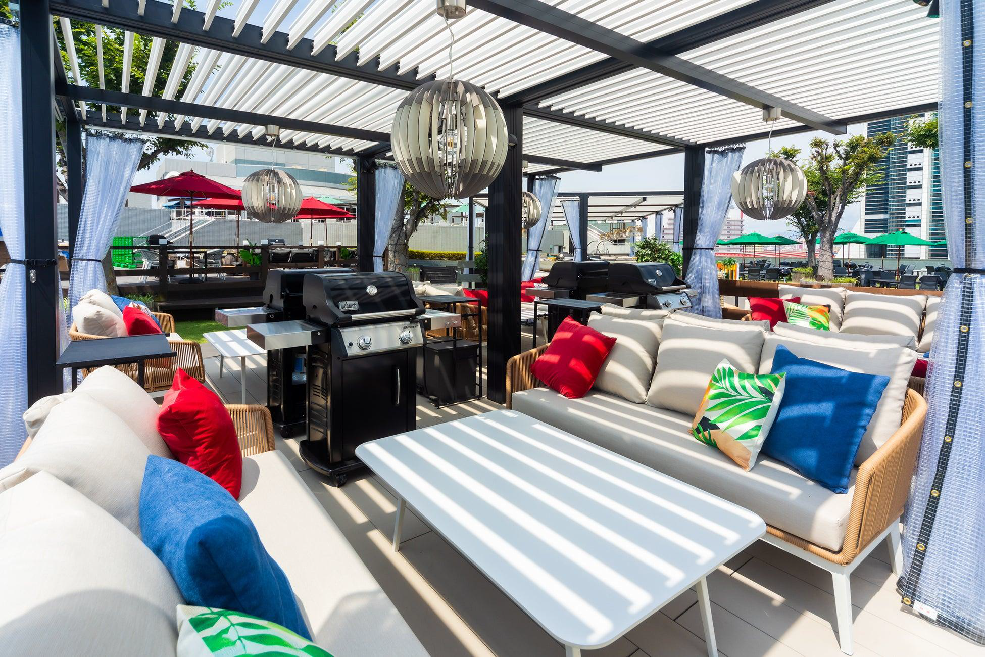 新たなコンセプトは「OUTDOOR LOUNGE(アウトドアラウンジ)」。設備や食材を見直し、屋上でゆったり過ごせるバーベキュー空間として再整備した。