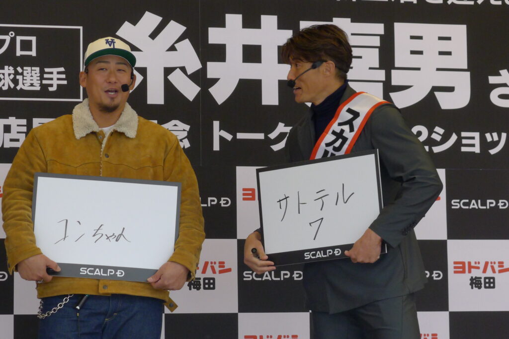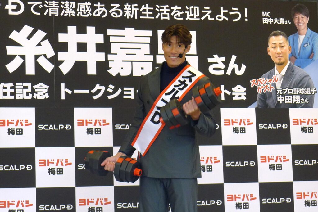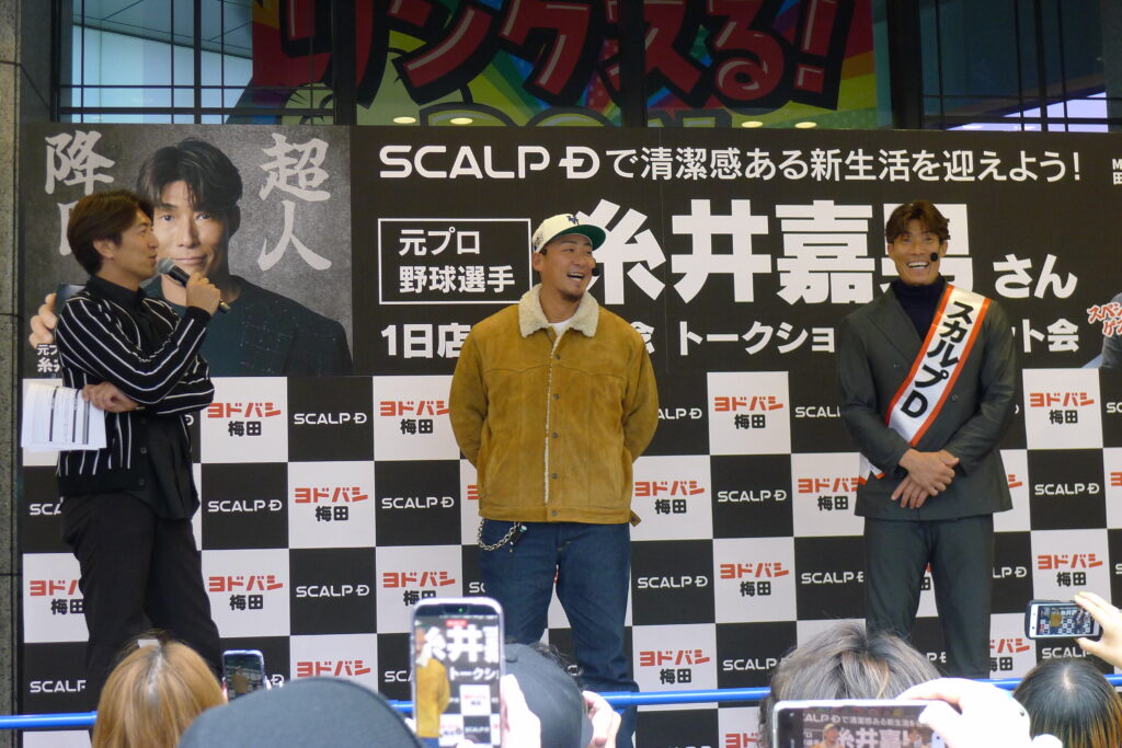 「アンファー」(東京都千代田区)が展開するメンズシャンプーブランド「スカルプD」のブランドアンバサダーを務める元プロ野球選手の糸井嘉男氏が2月28日、ヨドバシカメラマルチメディア梅田の特設売り場にて「1日店長」に就任した。イベントには、日本ハム時代のチームメイトで親交の深い中田翔氏がスペシャルゲストとして駆けつけ、詰めかけた多くのファンを前に、爆笑を誘うトークや筋トレを披露した。