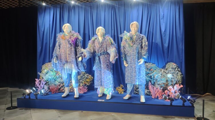 6番目のエリアは、「COSTUME RUNWAY」で、「DOME LIVE 2023 ”Atlantis”」のステージ衣装やミュージックビデオ撮影で実際に着用した衣装や小道具が並んでいる。