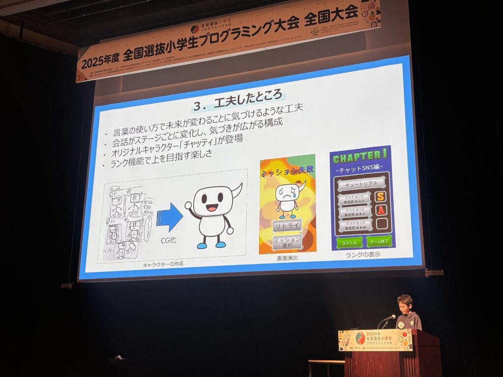 独自の発想とプログラムで制作したアプリなどを発表する「2025年度全国選抜小学生プログラミング大会」が7日、品川インターシティホール(東京都港区港南2丁目15−4)で開かれた。
