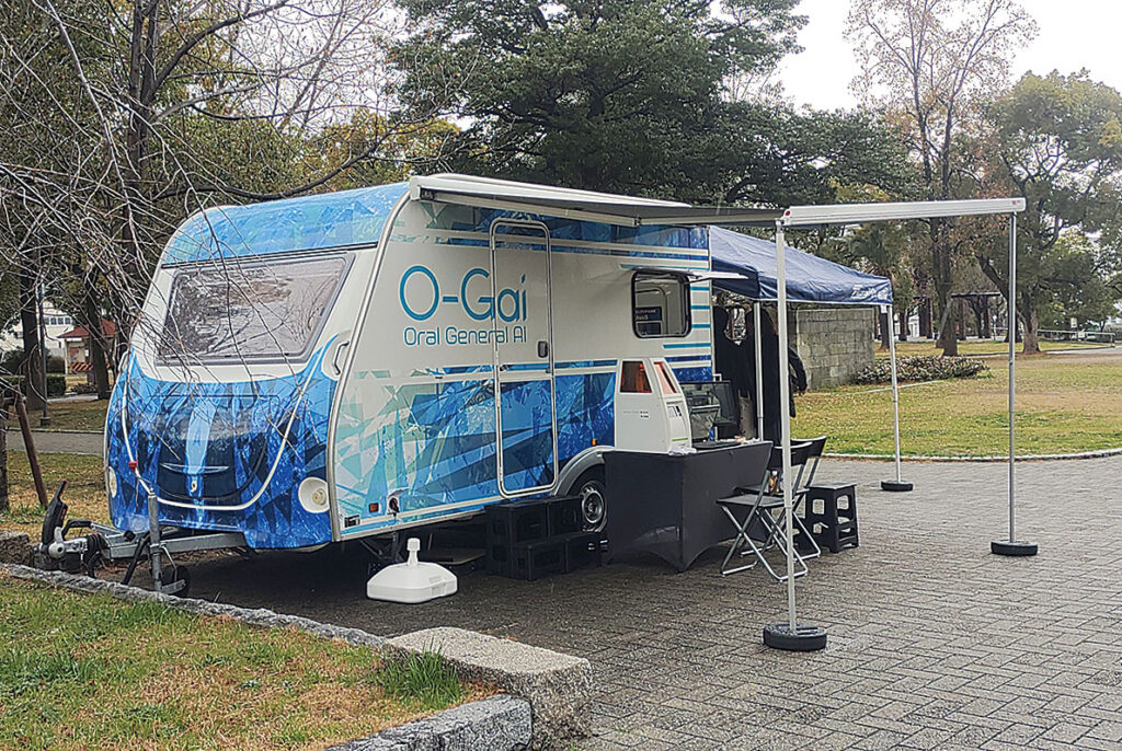 テクノロジーで歯科医療のあり方を変えるスタートアップ「オーガイホールディングス」(堺市堺区)は2月25日、医療MaaS車両「O─Gai(オーガイ)」を使った出張歯科検診の実証実験を、堺市内のザビエル公園などで行い、堺市や食酢メーカーのタマノイ酢(同市)が協力した。