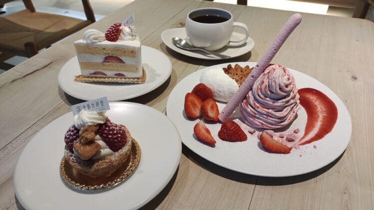 苺のしぼりたてモンブラン、丹波いちごのクリームパイ、そして丹波いちごのショートケーキの3つのスイーツを提供して頂いたが、どれも甘さ控えめ、脂分抑えめで食べやすく、3皿続けて味わい、気持ち良く完食できた。