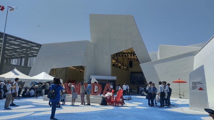 カナダパビリオンは、サステナビリティの観点から「再生」というテーマのもと、建設資材の再利用率を極限まで高める「サーキュラー・エコノミー(循環型経済)」を実践した建築方法を採用していた。