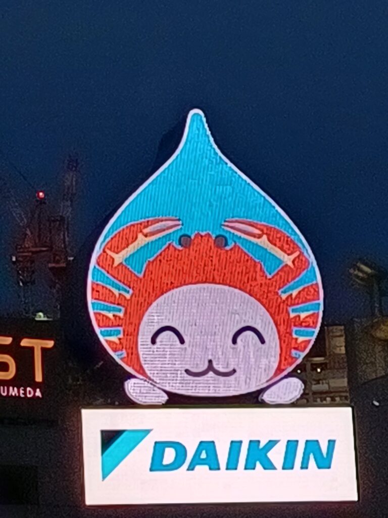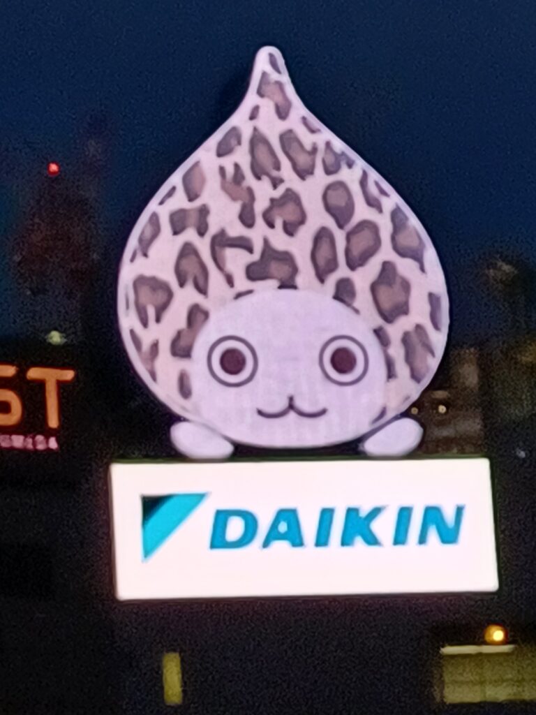 大ぴちょんくんは、同社のエアコン「うるるとさらら」のイメージキャラクター「ぴちょんくん」を基にした大型LED看板。空気の状態を視覚的に伝える取り組みの象徴として設置された。