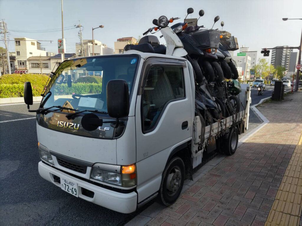 対応車種も幅広く、ホンダのカブやディオ、ヤマハのジョグやビーノ、スズキのレッツやアドレスといった主要メーカーのスクーターをはじめ、大型バイクや一部の電動バイクにも対応する。運営する信栄商会は、グループ全体で年間1万2000台以上の回収実績を持ち、全国8拠点を中心に迅速な対応を行っている。