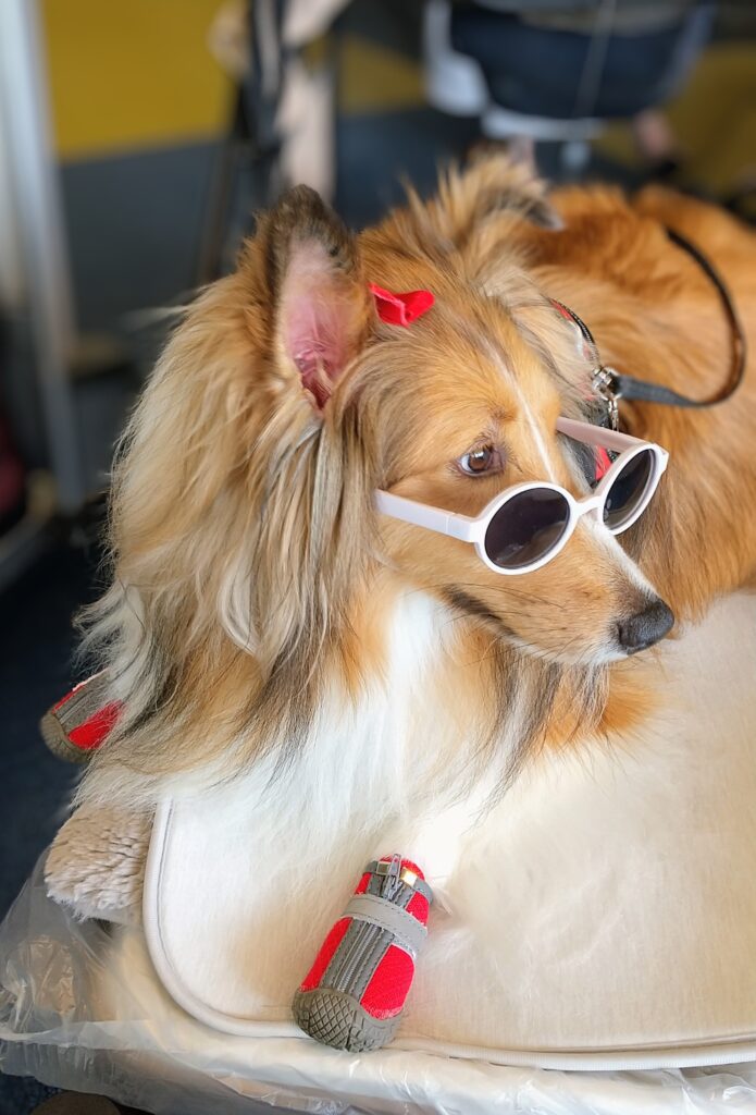 毎日のお散歩は赤い靴とサングラスでオシャレなむぎちゃん。甘えん坊で恥ずかしがり、そして食いしん坊のむぎちゃん。大好物はスイカとオレンジ。