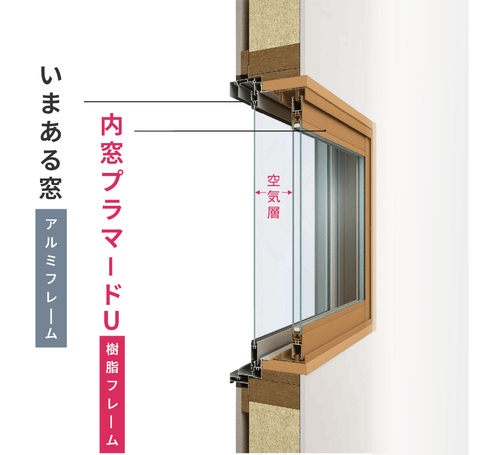 「YKK AP マドモリ プラマードU」のイメージ。間に空気を挟むことで熱が伝わりにくくなるほか、結露や防音効果も