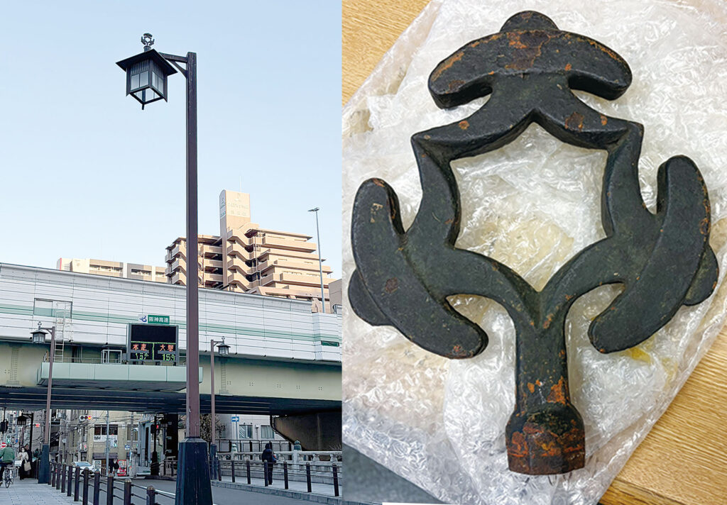 大阪で初の鉄橋となった高麗橋は評判を呼び、見物人が押し寄せた。呼び名も「高麗橋」から「鉄橋」へ変わり、大坂の町は大いにわいたという。欄干には当時の市章があしらわれた。いまの「みおつくし」ではなく、「大」の字をクローバーの葉のように組み合わせた意匠で、現在も街灯の上にレプリカとして見ることができる。高麗橋を訪れたら、ふと見上げてみるのも面白い。
