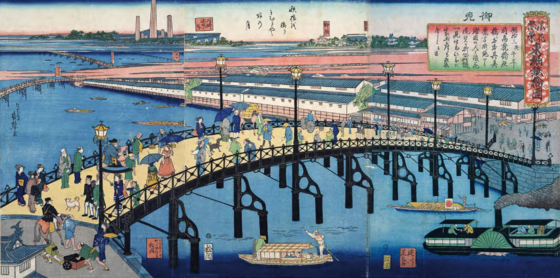 高麗橋は江戸時代の大坂にあった12の公儀橋の一つ。公儀橋は幕府が費用を負担して管理した重要な橋のことで、中でも高麗橋は特に重要な橋とされていた。かつて〝天下橋〟とも呼ばれたのは、そうした格の高さゆえともいわれる。さらに諸街道の起終点でもあった。寛文2(1662)年の「大坂馬借の者ども書上候覚」には、運賃(駄賃)の算出基準が高麗橋に置かれていたことが記されている。こうした取り決めは、すでに寛永2(1625)年には定められていたという。