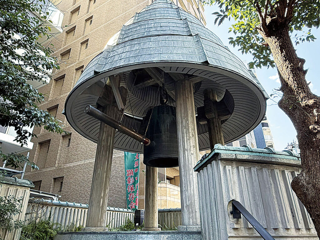 地名にもその記憶が残る。寛永11(1634)年、3代将軍家光が大坂城に入った際、大坂町中の地子銀が永代免除されたという。その恩恵に感謝し、町役人の最高責任者である惣年寄らが釣り鐘をつくり、高麗橋のたもとに置いたことが、釣鐘町の起こりと伝わる。安曇江は東横堀川の旧名で、かつて河畔には安曇寺があったといい、今も堀の東西に安堂寺町の名が残る。