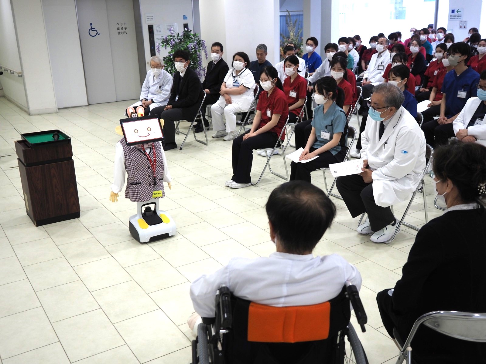 新入社員ロボット「テミちゃん」の導入は、単なる人手不足への対応ではない。入院案内や院内の場所誘導に加え、マイナンバー登録の推奨案内、売店・喫茶の宣伝など定型業務をロボットが担うことで、スタッフが患者一人一人と向き合う時間を確保し、より手厚いケアにつなげる狙いがある。「テミちゃん」は患者と直接向き合い、笑顔と安心を届ける〝仲間〟としての役割も担い、同日から院内業務を開始した。