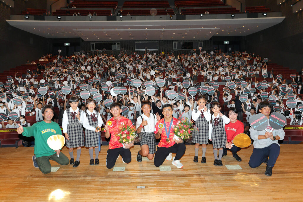 また、同社がサポートする五輪金メダリスト、レスリングの文田健一郎選手や樋口黎選手、冒険家の坂本達氏を招いた特別授業を実施。トップアスリートらの熱い言葉は、児童の心に挑戦する心を育んでいる。