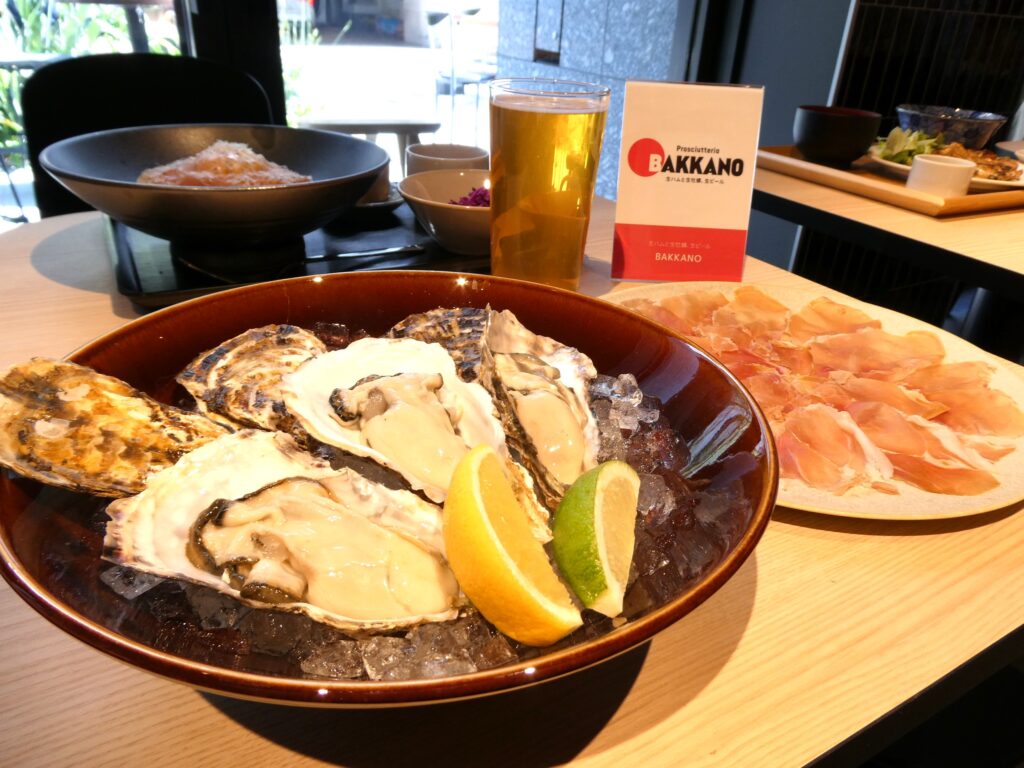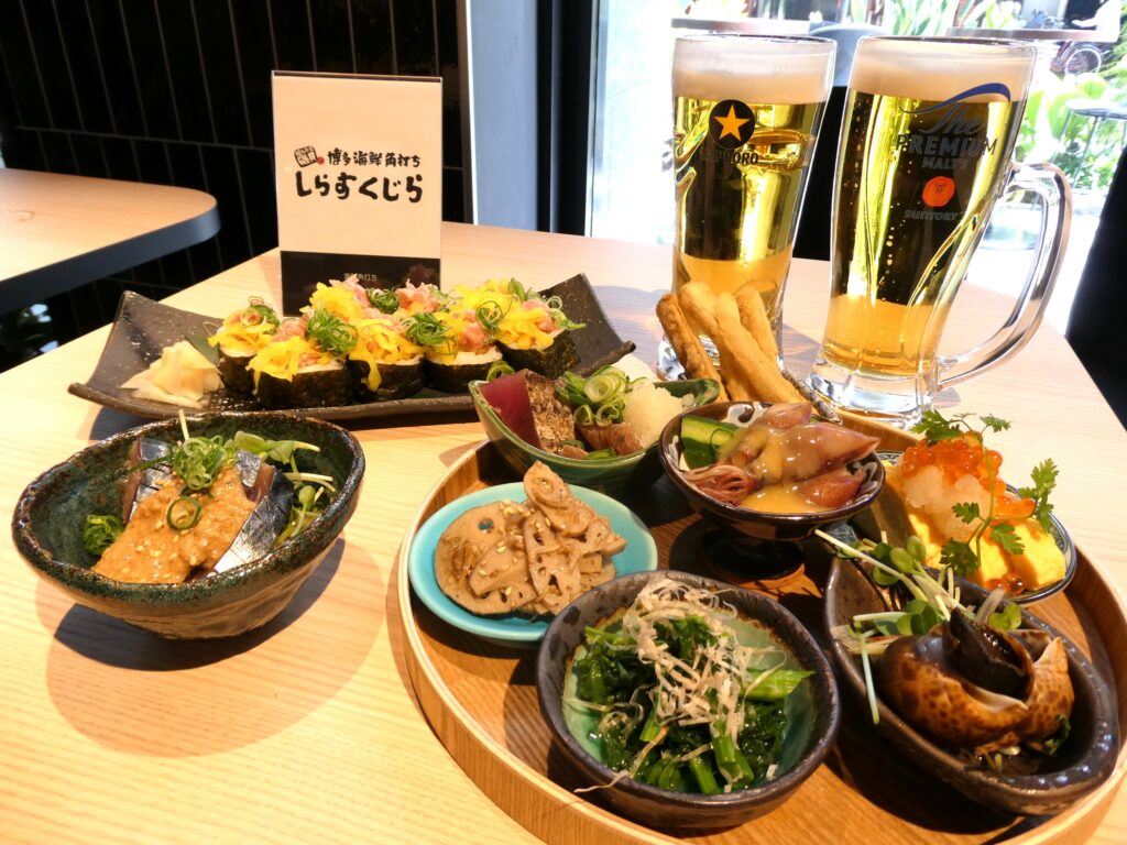 「BAKKANO」では、生ハムや生牡蠣に合わせたクラフトビールのペアリングが楽しめる。コクがあってビターな黒ビールは生ハムなどの肉料理の濃厚な味わいをすっきりと引き締めてくれ、フルーティーで爽やかな白ビールは牡蠣や魚介類のミネラル分と好相性。もちろん他店のメニューとの組み合わせを試してみるのも楽しい。「しらすくじら」では、福岡直送の鮮魚を使った海鮮料理をリーズナブルに提供。博多の名物〝ごまさば〟もあり、魚好き、居酒屋好きにはたまらない一軒だ。