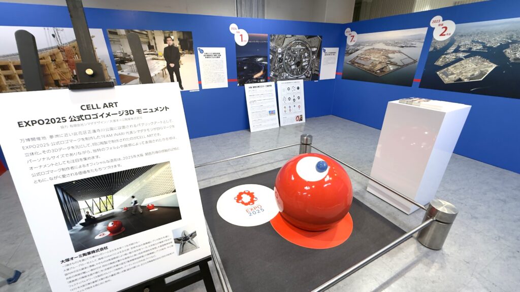 会場には、実際に展示されていたモニュメントや関連資料も並ぶ。NTTパビリオンの体験型展示「せかいがきこえる伝話」や、住友館で使用されたランタン、電力館のタマゴ型デバイスなどを展示。さらに、インドネシアパビリオンの衣装やマスコット、万博花火の模擬玉なども公開する。