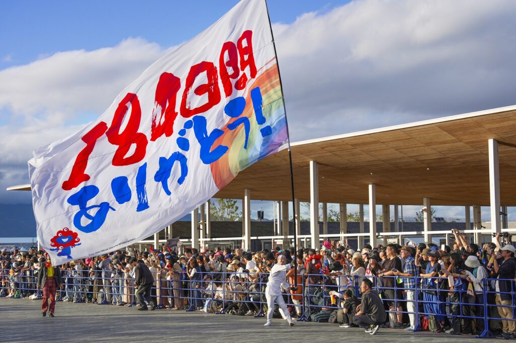 展示は「万博の鼓動を、未来への力に」をテーマに構成。会場を空から捉えた俯瞰写真や、来場者の歓声や行列といった現地の空気感を伝えるカットなど、多様な視点から万博の記録を振り返る。食文化に焦点を当てた写真も並び、来場者の記憶に残る〝万博メシ〟を紹介する。