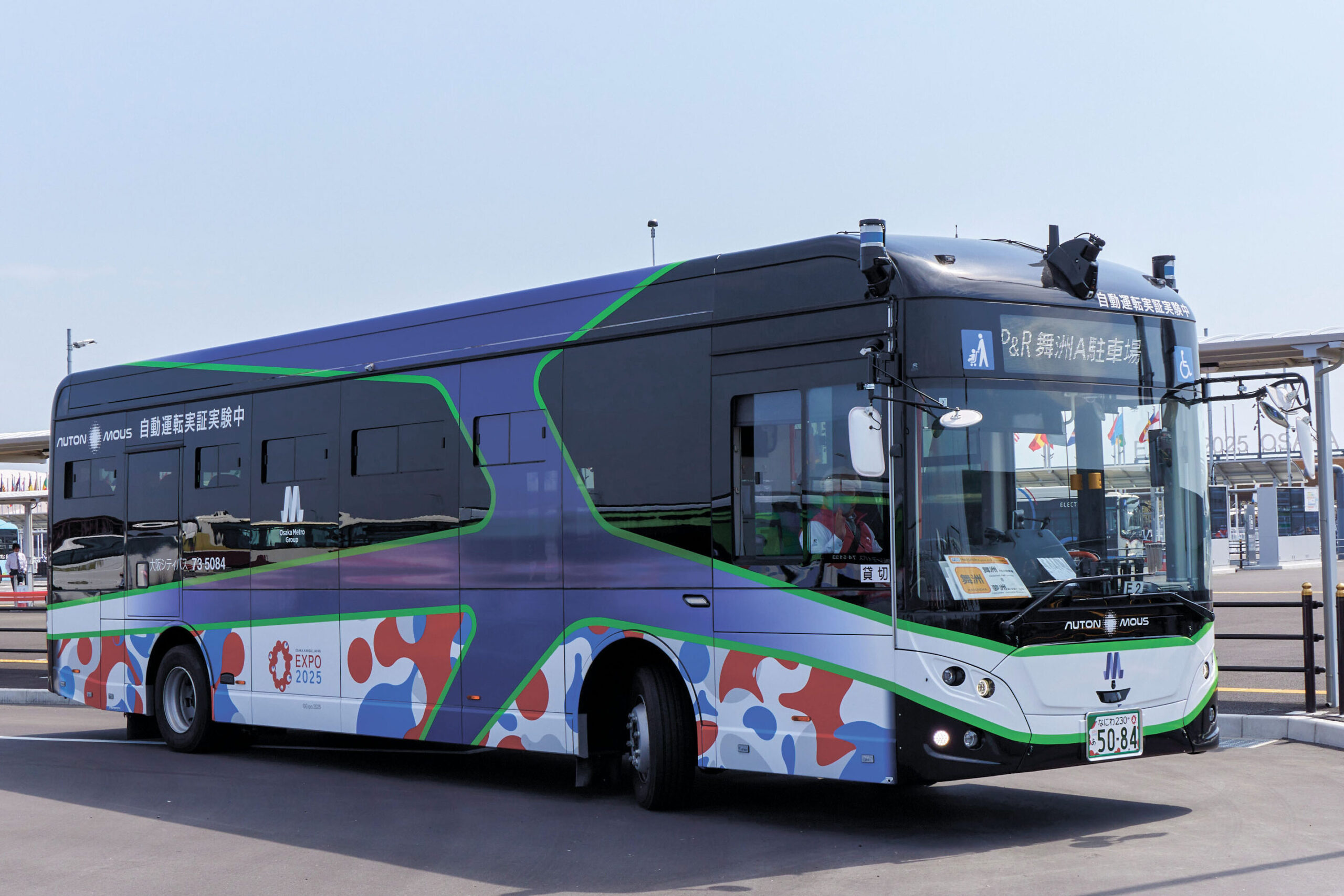 大阪・関西万博開場を走る自動運転バス=2025年4月14日(撮影:田中庸介/アフロ)