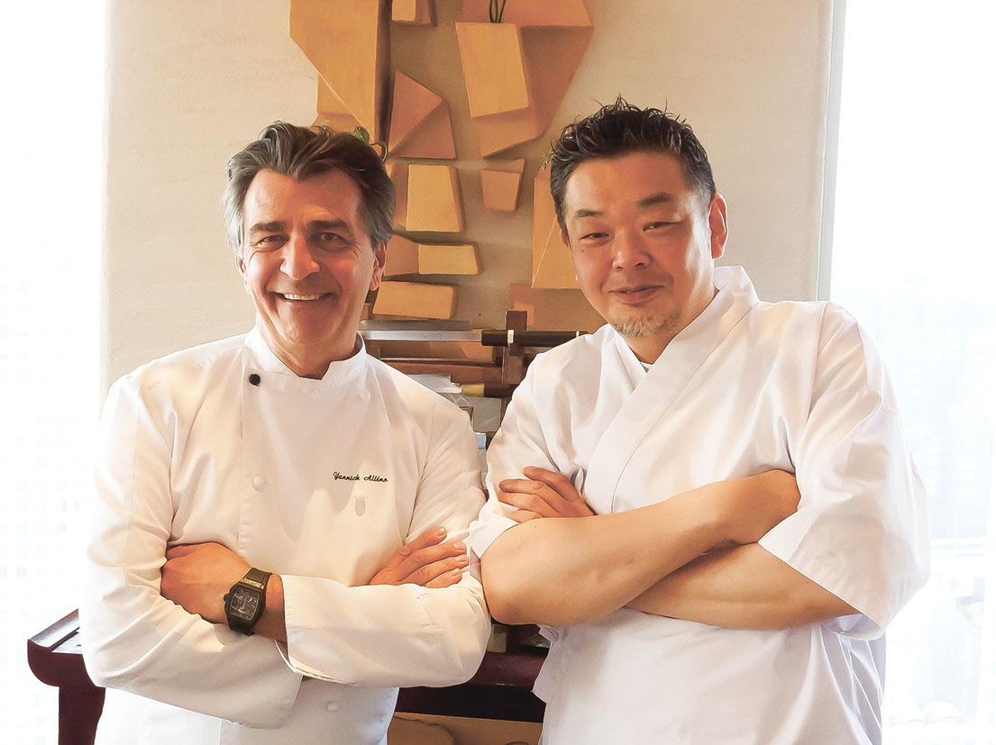 パリ、モナコに続く世界3店舗目として誕生した同店は、フランス料理界を代表する巨匠ヤニック・アレノ氏と、日本の鮨職人の技が交差するガストロノミーの舞台だ。3月、桜のつぼみが膨らむ季節にアレノ氏が来館した。フランス国内で二つの三つ星レストランを率いる同氏は、現代フランス料理を牽引する存在。大阪では安田至料理長とともに、単なる「和と洋の融合」を超えた、二つの文化が互いを高め合う新たな表現を提示する。