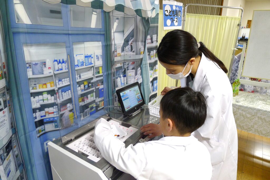 会場では、医療の専門性を生かした体験型ブースが人気を集めた。内視鏡の操作体験や心臓リハビリテーションの紹介など、普段触れる機会の少ない医療現場を身近に感じられる内容が並んだ。薬の分包機の実演では、子どもが薬剤師体験を楽しむ一方、大人が正しい服薬方法を学ぶ姿も見られた。