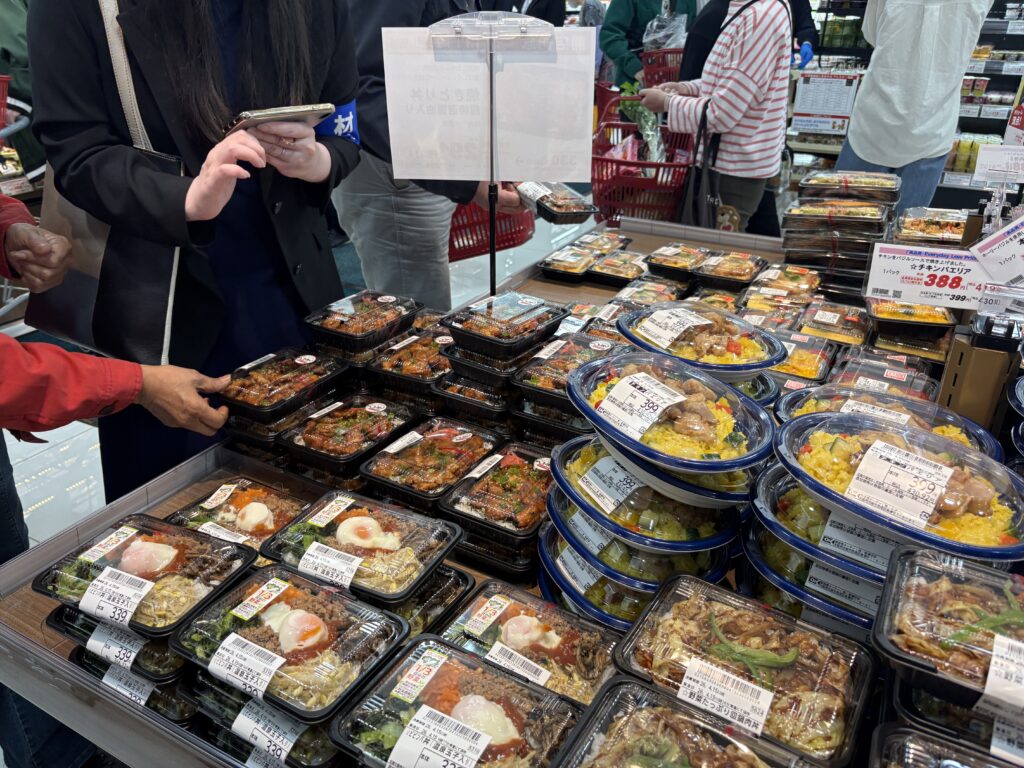 「安くておいしい」と人気の弁当コーナー=4月15日、オーケー南津守店(編集部撮影)